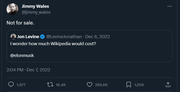 And perhaps most importantly, a cooperative cannot be strangled by the biggest shithead on planet Earth throwing his money around. Should Bluesky actually look likely that it will succeed Twitter, I think it is quite likely that Elon Musk (or someone like him) will try to buy it and destroy it out of spite. I'm kind of surprised he hasn't tried already—it wouldn't cost much compared to what he's blown on ruining Twitter.